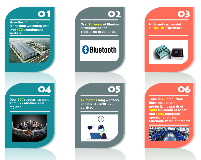 For more than two decades, businesses have relied on us as their supplier for high-quality earphones and headphones, encompassing Bluetooth earbuds, Bluetooth headphones, gaming headphones, sports earbuds, and speakers. Our products are manufactured to meet the demanding standards of EU CE RoHS and American FCC certifications, reflecting our long-standing commitment to quality and compliance.